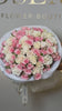 A graceful blend of ivory and blush spray roses unfolds in endless waves of delicate petals. Soft champagne tones intertwine with tender pink accents, creating a bouquet that radiates harmony, warmth, and timeless beauty. It feels both luxurious and gentle — like a whispered promise of elegance and affection.